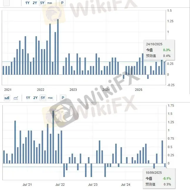 在因政府停摆而充满不确定性的市场中,原定本周发布的美国10月CPI与PPI数据能否如期公布成为一大悬念。市场预计,10月CPI环比增长0.2%,同比增速或放缓至2.9%。若市场预期落地,将表明通胀压力并未广泛加速,从而为美联储在12月再次降息亮起“绿灯”。