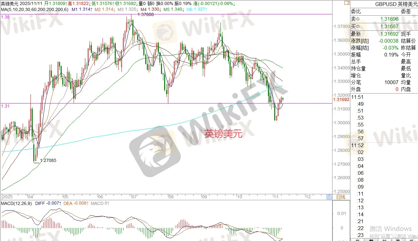 支撑位:1.3150-1.3110-1.3065-1.3010-1.2960-1.29-1.2825