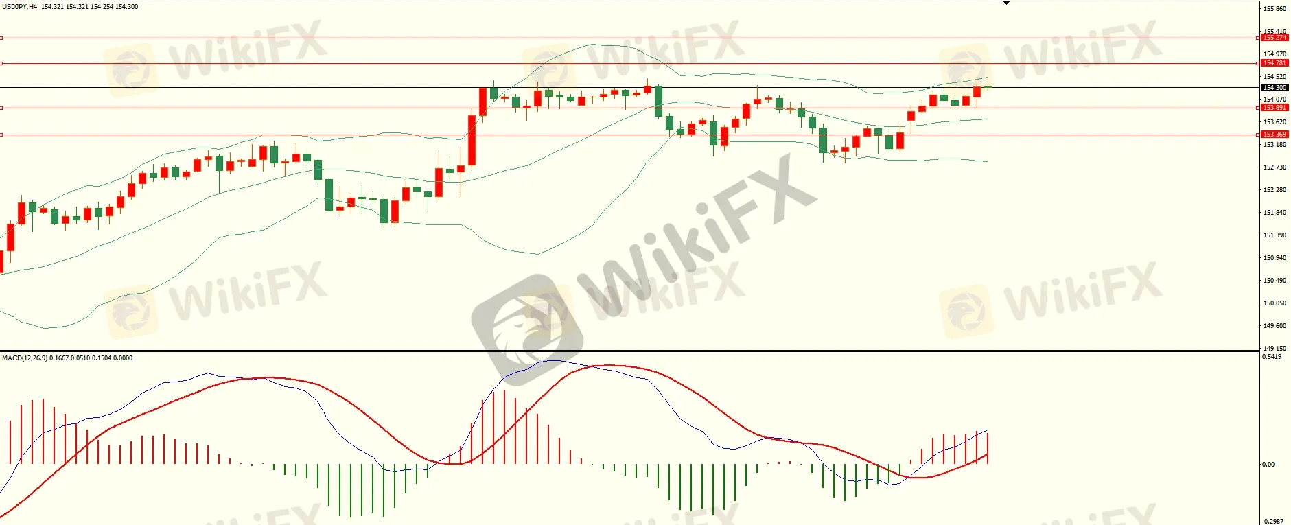 美日昨日亚市开盘后展开反弹,欧盘时段触及第一阻力下方小幅回落,日线报收中阳线,收盘位置触及前阻力,突破后方可打开上升空间,从4H来看,布林中轨拐头向上,MACD零轴附近运行,日内下方首要支撑153.90,第二支撑153.35,上方阻力154.75,155.25,保持在第一支撑上方短线有望测试第一阻力。