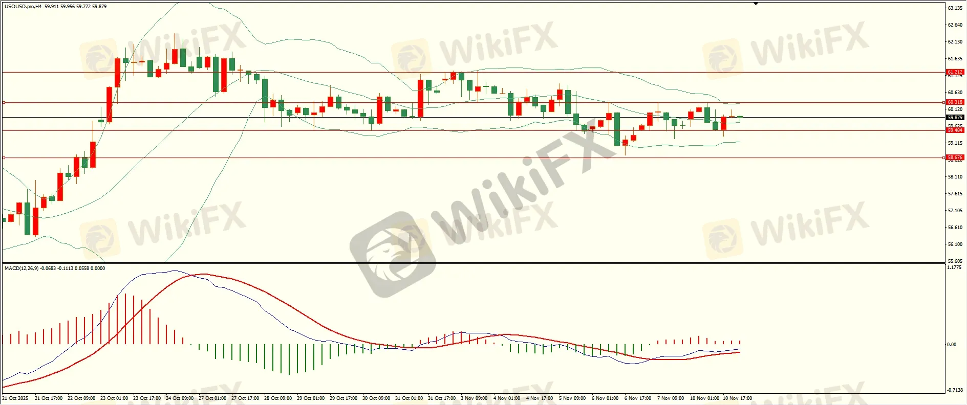 原油昨日基本局限于第一阻力与第一支撑之间运行,日线报收小阳线,支撑与阻力并存,短线的多空争夺有望继续,从4H来看,布林中轨略有走平,MACD零轴下方运行,日内下方首要支撑59.45,第二支撑58.65,上方阻力60.30-40,61.20,保持在第一支撑上方短线有望回测第一阻力。