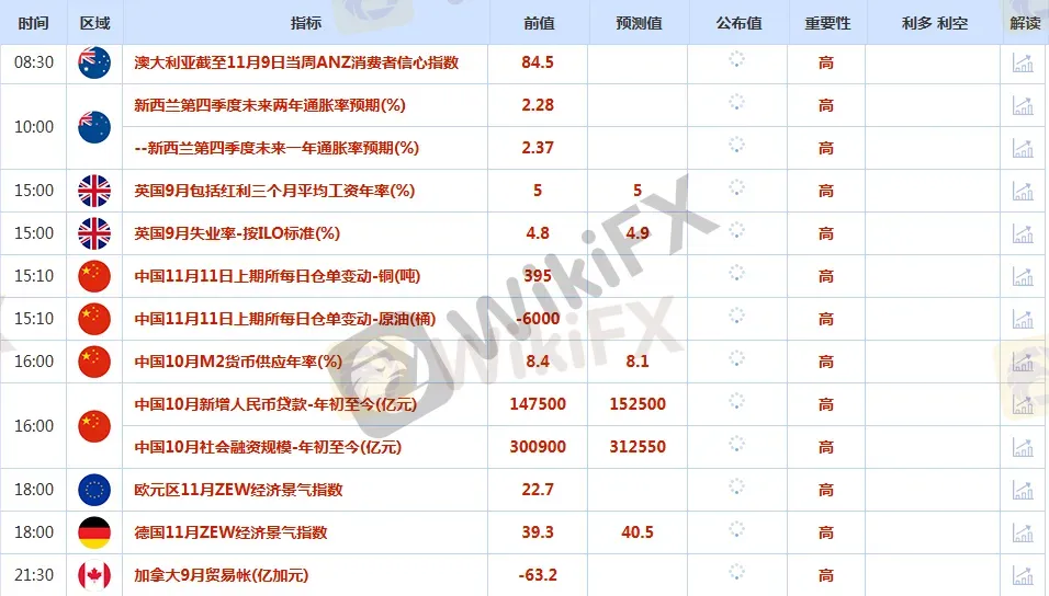因美国老兵纪念日假期临近。随着政府停摆可能结束,市场焦点将转向即将恢复发布的经济数据,特别是非农就业报告,这些数据将为货币政策路径提供更清晰指引。