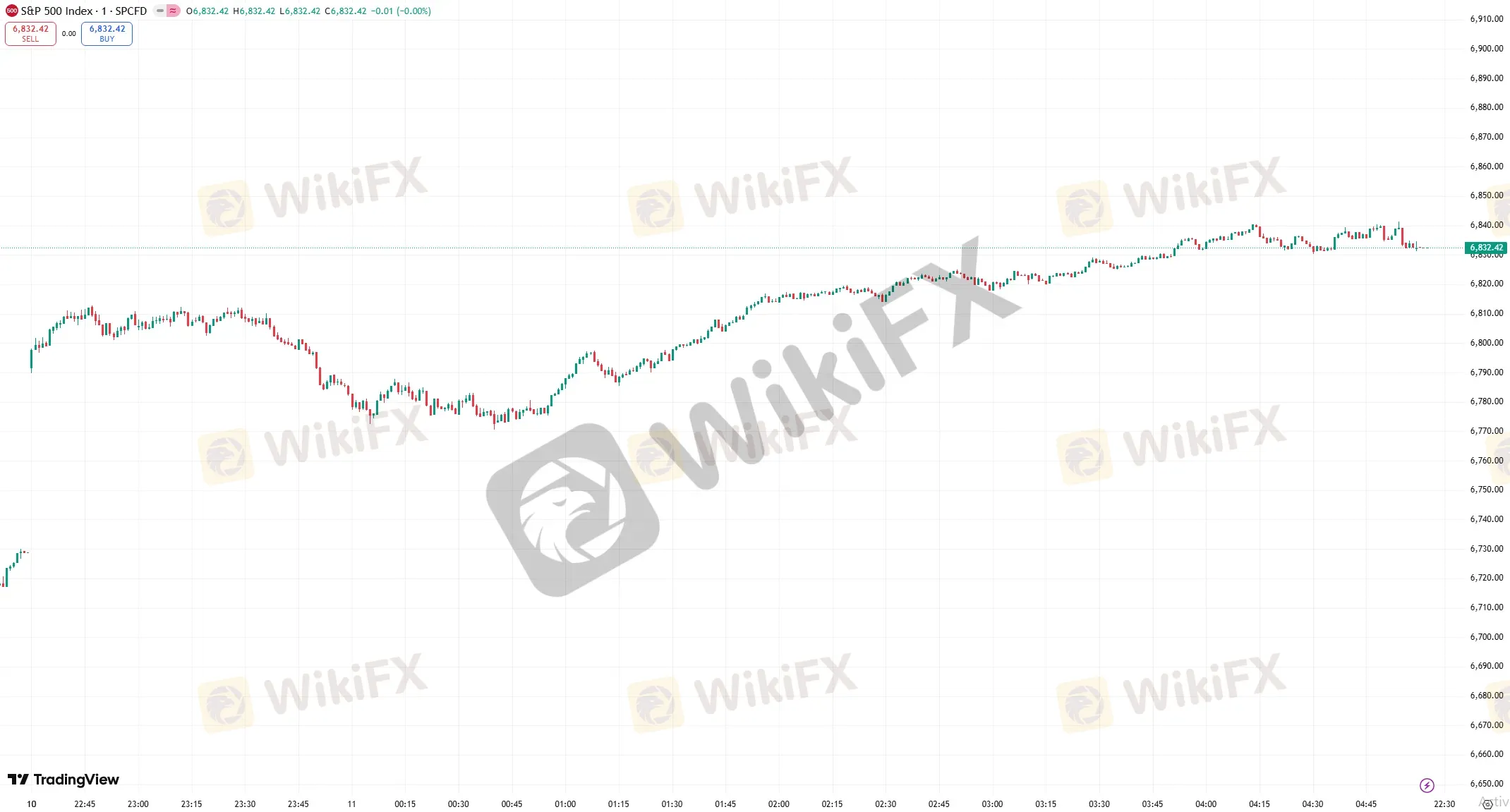 标普 500 指数涨 103.63 点,涨幅为 1.54%,报 6832.43 点