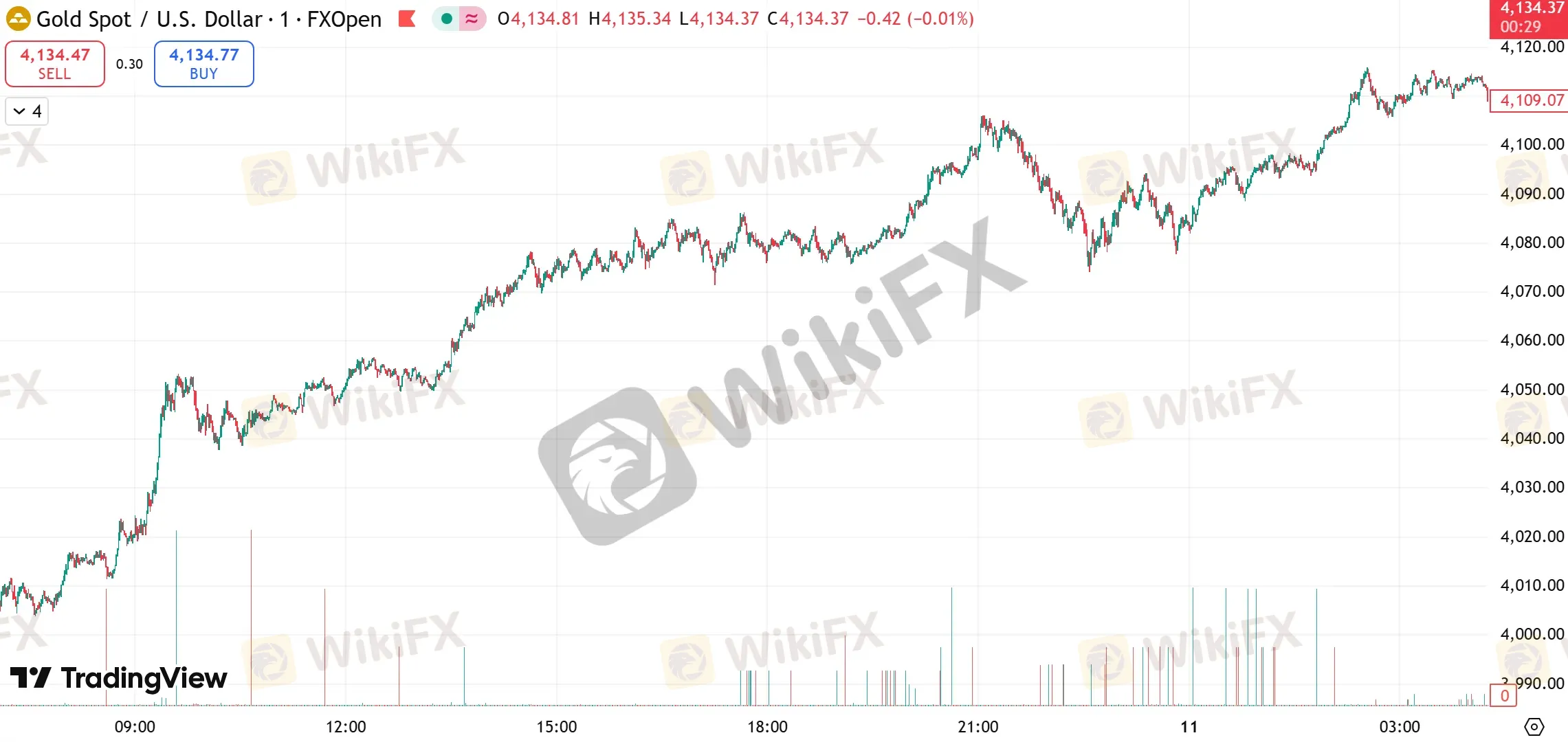金价周一强势上涨,单日涨幅达 2.8%,收于每盎司 4111.39 美元,创下两周多以来的最高收盘水平。12月交割的美国黄金期货同步上涨2.8%,收报 4122.00 美元。市场对美联储降息预期的升温,推动黄金需求。