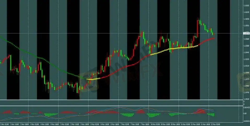 H1 趋势线颜色由黄转红,前期 1.1506 多单已达成盈利目标。日内可参考 M5 综合运用模型进行交易。