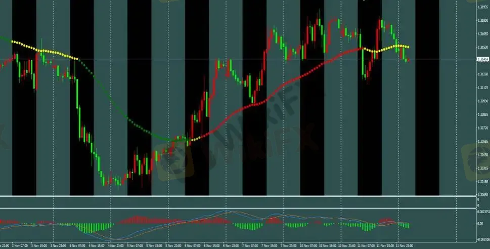 H1 趋势线颜色由红转黄,前期 1.3064 多单已达成盈利目标。日内可参考 M5 综合运用模型操作。