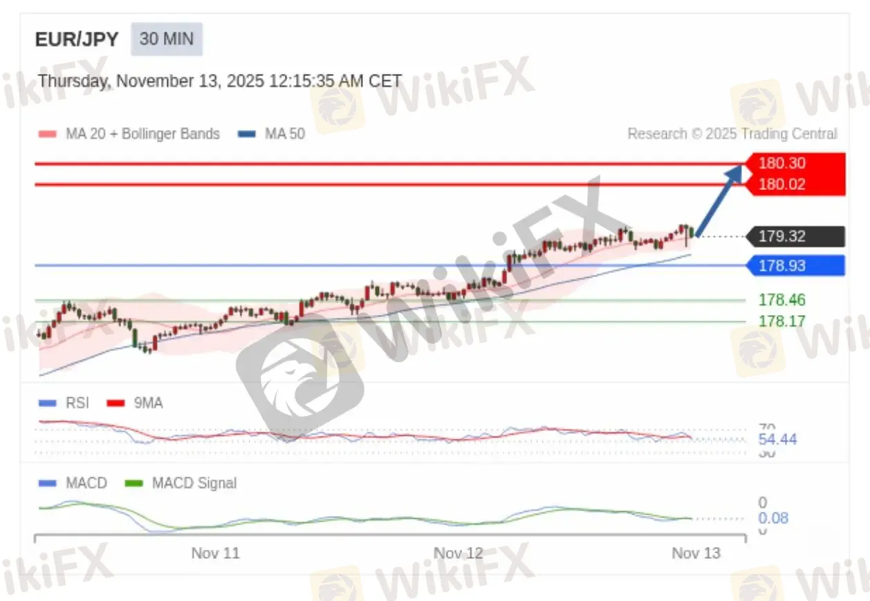 欧元/日元 当日内 : 看涨,当 178.93 为支撑位,目标定在180.30。
