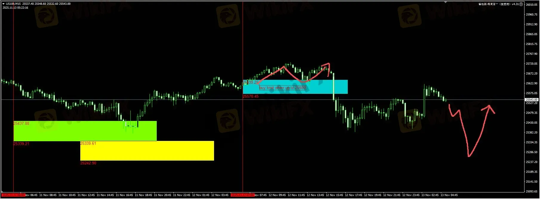 纳指:昨天蓝色区域的突破回踩买入的策略,能有一波效果,但距离1:1的盈亏比,差了7个bp。日内我们保持对纳指扫荡流动性的特性的关注。等待价格低扫25200/25300之后,再尝试抓反弹信号。详细位置请咨询插件。