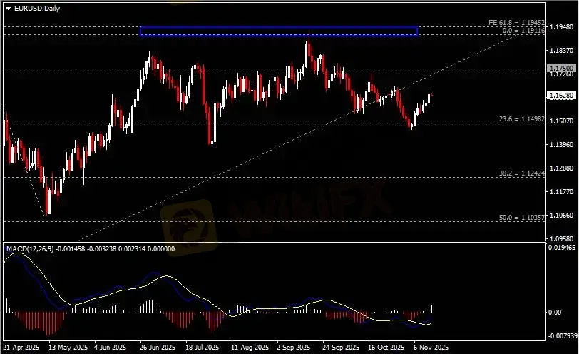 日线图显示欧元兑美元震荡上行,当前企稳于1.15关键支撑。从MACD来看,快慢线拐向上行,白色动能柱温和放量。汇价走势基本和动能柱的变化一致。