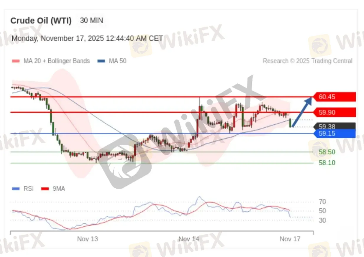 在 59.15 之上,看涨,目标价位为 59.90 ,然后为 60.45 。