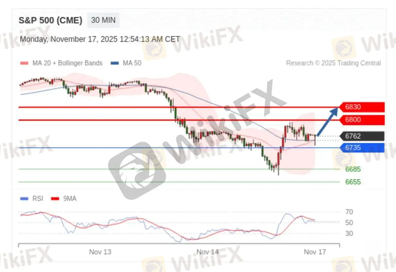 在 6735 之上,看涨,目标价位为 6800 ,然后为 6830 。