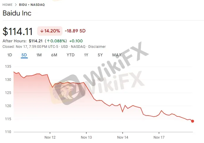 11 月 17 日至 18 日,百度(BIDU)周五举行了旗下旗舰模型 Ernie 5.0 的发布会,但升级内容被认为缺乏亮点,引发投资者失望,股价随即大幅下挫。