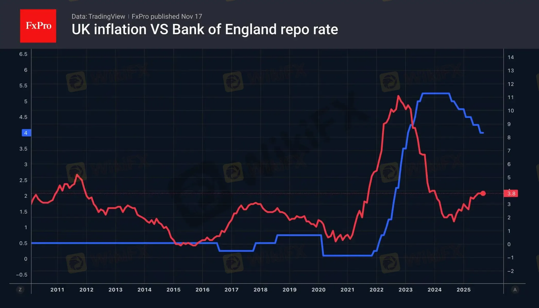 英镑已连续第十天在略超 100 点的区间内波动。集中的经济数据发布日程与加税预期,正推动英镑兑美元(GBPUSD)涨跌交替。英国央行称通胀峰值已达 3.8%,但 10 月消费者物价指数(CPI)数据发布可能显示通胀加速,与市场普遍预期的放缓至 3.6% 相反。这将降低 12 月大幅下调关键利率的可能性,虽仅能暂时为英镑提供支撑。