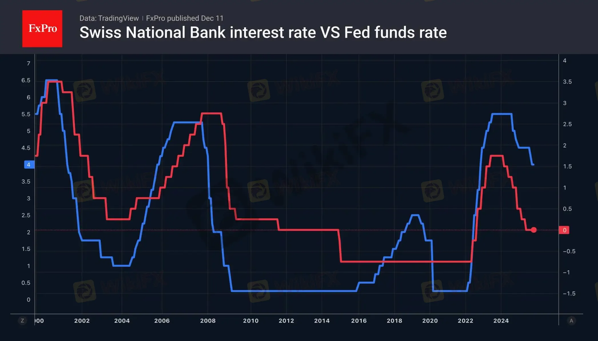 美元下跌的主要受益者是瑞士法郎和英镑。瑞士宣布追溯性下调美国进口关税,税率从 39% 降至 15%。这一调整将于 11 月 14 日生效,预计将提振瑞士出口与经济。此外,美联储释放的暂停降息信号,加之其他央行的政策转向,正缓解市场对瑞士央行(SNB)重返负利率的担忧,这也支撑了美元兑瑞郎(USDCHF)的看空情绪。