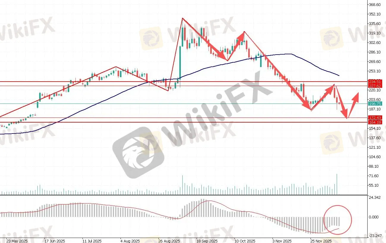 第一阻力位:207.00 第一支撑位:190.00