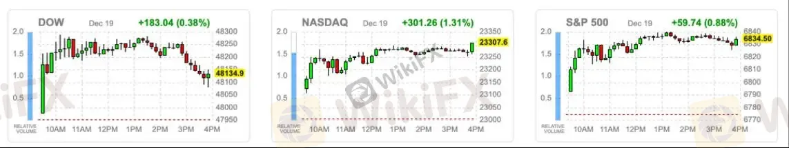 整体而言,通胀降温与年底季节性行情为美股提供支撑,短线市场风格仍以科技与成长主导,后续需关注利率预期与宏观数据变化对风险资产的影响。