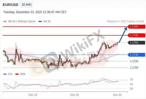 交易策略: 在 1.1735 之上,看涨,目标价位为 1.1780 ,然后为 1.1800 。