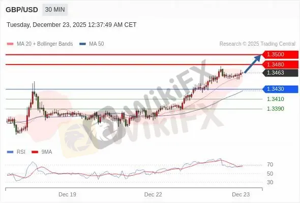 交易策略: 在 1.3430 之上,看涨,目标价位为 1.3480 ,然后为 1.3500。