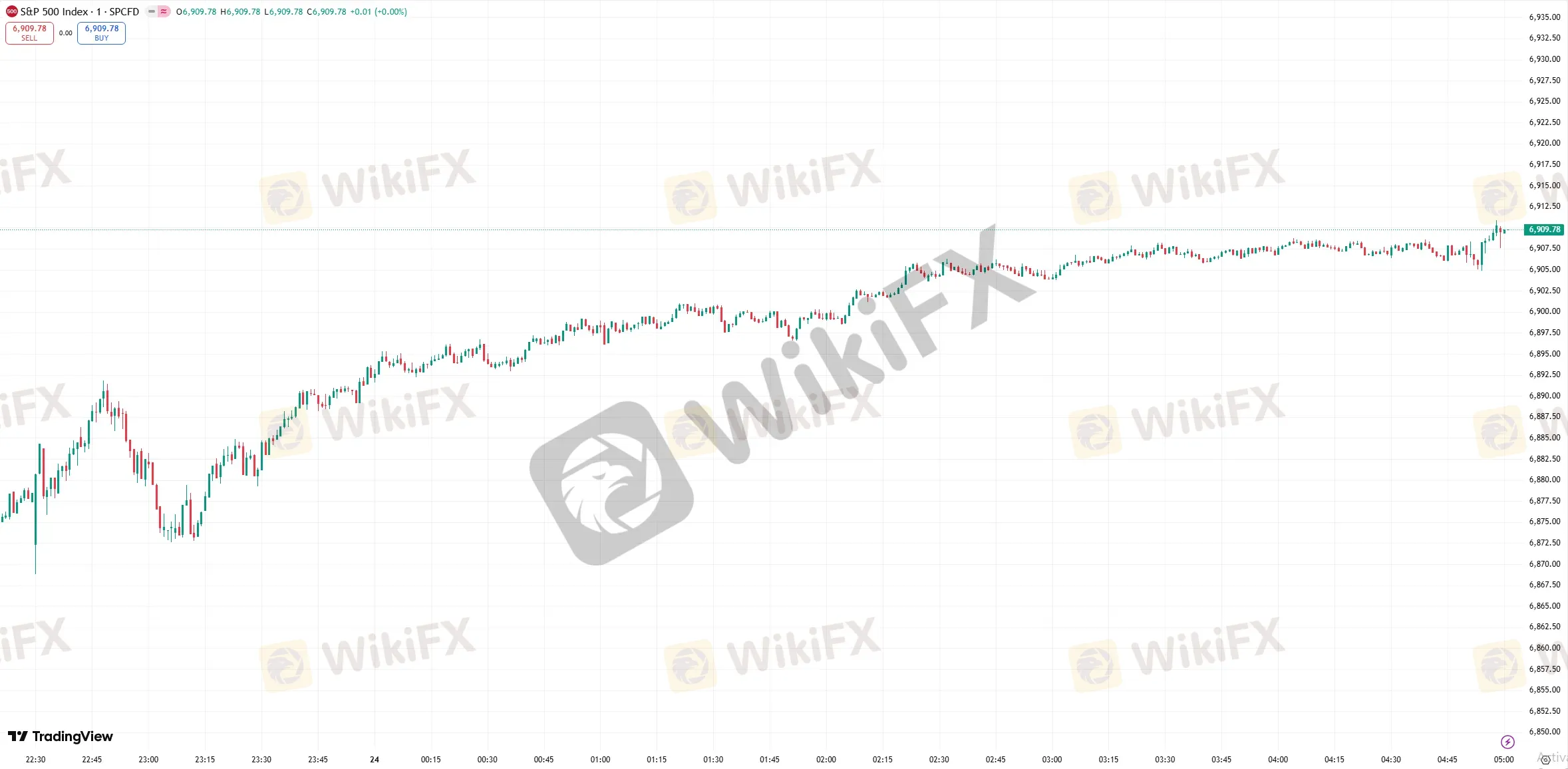 标普 500 指数涨 31.30 点,涨幅为 0.46%,报 6909.79 点