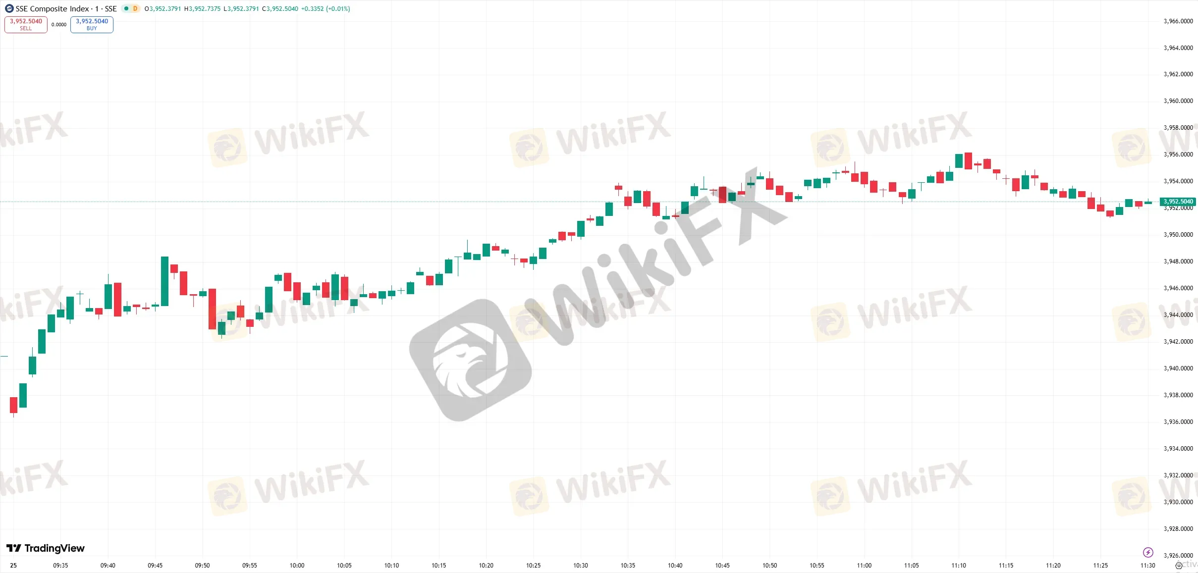 A 股三大股指早盘走势分化,沪指小幅低开后震荡走高,深成指及创业板指小幅冲高后震荡走势,午前维持低位窄幅震荡。截至午盘,上证指数涨 0.29%,深证成指跌 0.11%,创业板指跌 0.38%,北证 50 涨 1.04%。全市场成交额 12119 亿元,较上日成交额放量 527 亿元。