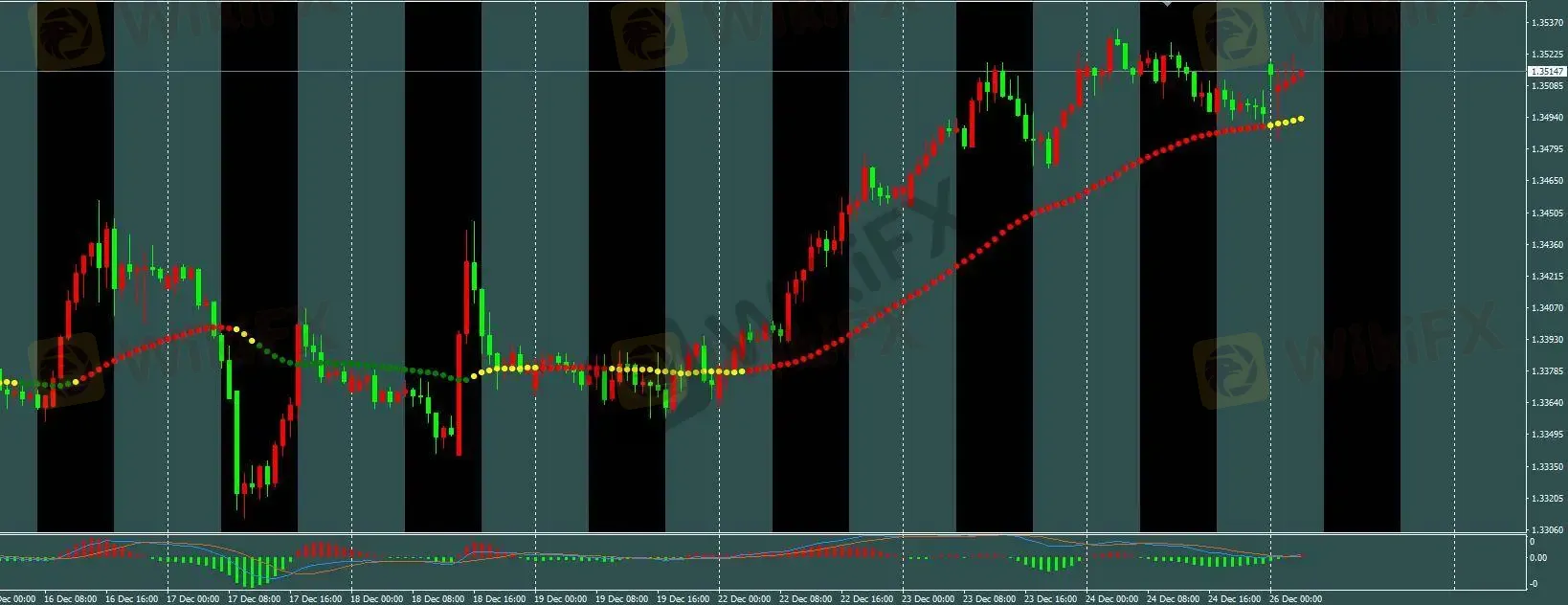 H1 三色线已由红转黄,前期多单于 1.3380 入场并达成盈利目标。今日可参考 M5 综合运用模型进行短线交易。