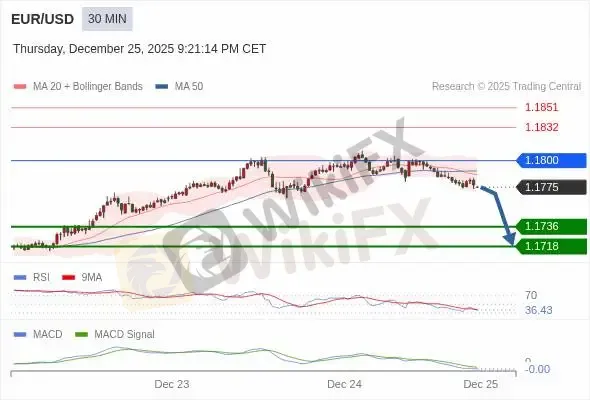当日内看跌,在 1.1800 之下,转折点在1.1800。