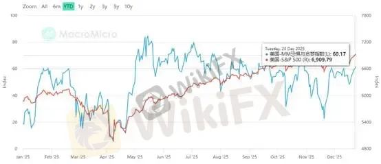 回顾今年以来的走势可以发现,每当贪婪指数接近70至80一带时,市场容易出现震荡或回调;而目前60出头的位置,像是顺势推进阶段。这也说明,尽管风险资产普遍处于相对高位,但资金仍保留谨慎,在风险与避险转换下,部分资金流向黄金,使金价维持上涨动能。