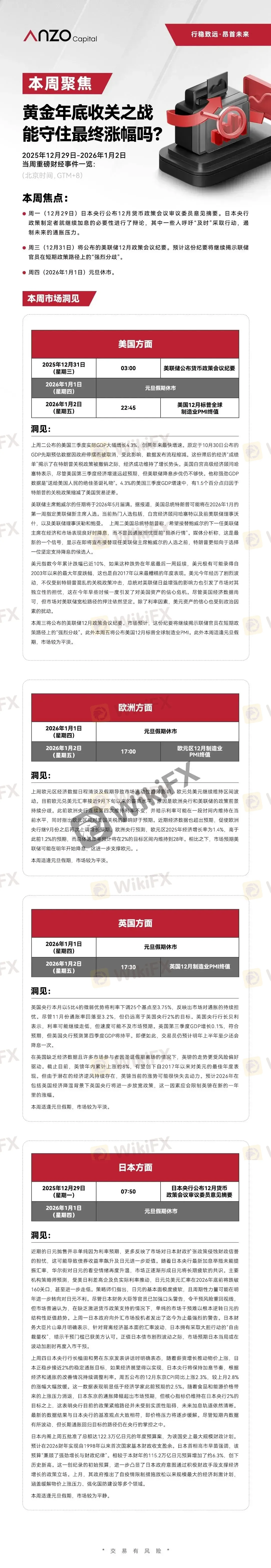 【Anzo Capital 12.29-01.02 | 本周聚焦】黄金年底收关之战,能守住最终涨幅吗?
