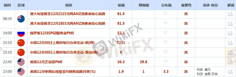 摘要:CWGMarkets市场资讯2025年12月30日(周二):汇讯摘要:周一,美元指数低位横盘,最终收跌0.059%,报98.01;美债收益率普跌,基准的10年期美债收益率最终收报4.111%,对美联储政策利率敏感的2年期美债收益率收报3.438%。现货黄金周一(12月29日)从前一交易日的纪录高位4549.69美元/盎司大幅回落,收盘暴跌4.4%,收报4331.78美元/盎司。整个贵金属板块都出现