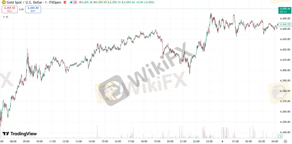 现货黄金上涨 2.7%,报每盎司 4444.52 美元,创下自去年 12 月 29 日以来的最高水平。2 月交割的美国黄金期货上涨 2.8%,结算价报每盎司 4451.5 美元。此前,黄金曾在 2025 年 12 月 26 日创下每盎司 4549.71 美元的历史纪录。