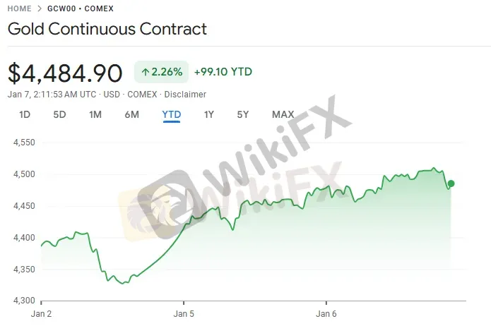 国际金价周二继续攀升,避险需求升温成为主要推动力。美国于周末突袭并抓捕委内瑞拉总统尼古拉斯·马杜罗 (Nicolás Maduro) 后,全球地缘政治紧张情绪急剧升温,投资者纷纷增持黄金等避险资产。与此同时,市场正关注本周五即将公布的美国非农就业报告,以寻求更多关于美联储今年利率政策走向的线索。