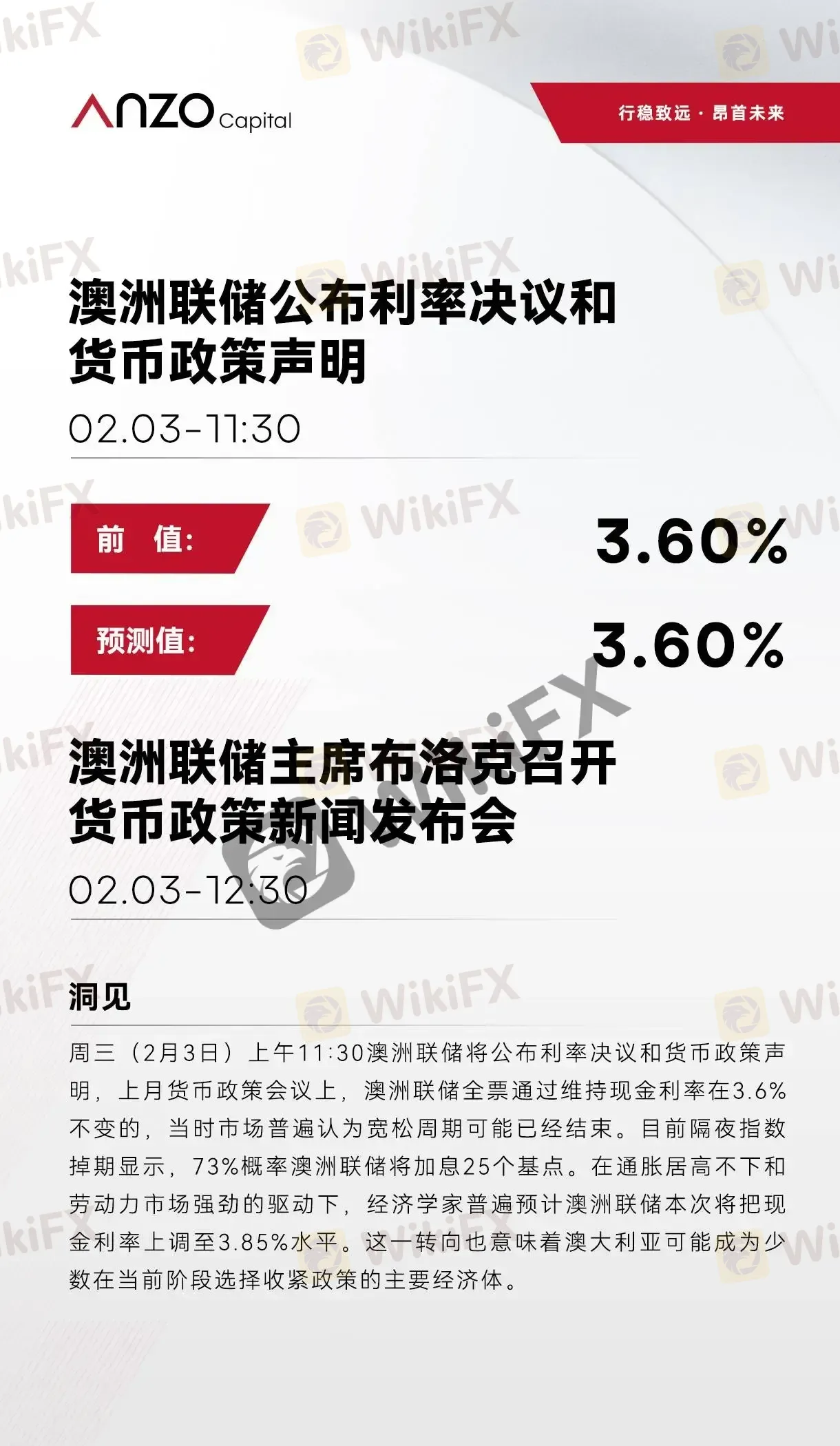 【北京时间·2026年02月02日】澳洲联储利率决议
