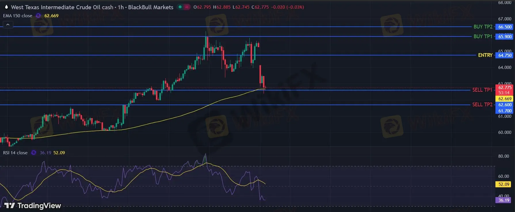 在 64.75 之下,看跌,目标价位为 62.60 ,然后为 61.70 。