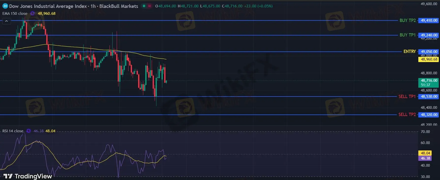 在 49050 之下,看跌,目标价位为 48530 ,然后为 48320 。