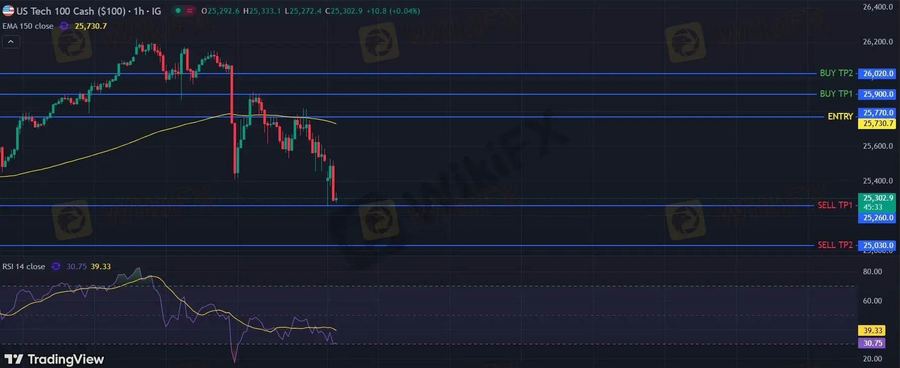 在 25770 之下,看跌,目标价位为 25260 ,然后为 25030 。