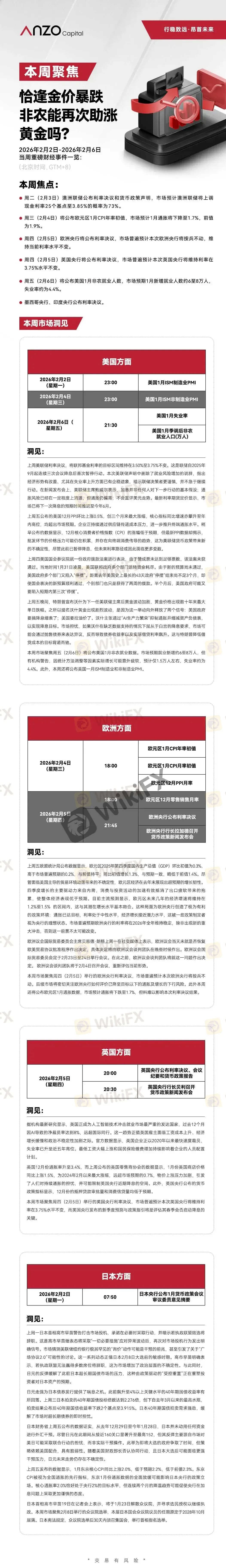 【Anzo Capital 02.02-02.06 | 本周聚焦】恰逢金价暴跌,非农能再次助涨黄金吗?