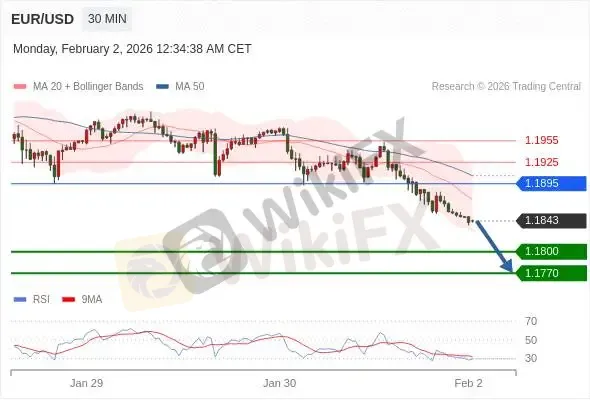 交易策略: 在 1.1895 之下,看跌,目标价位为 1.1800 ,然后为 1.1770。