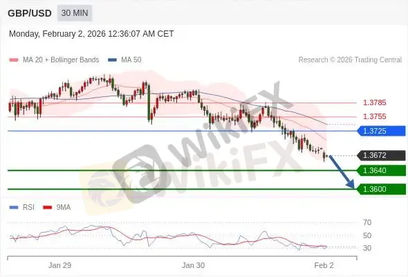 交易策略: 在 1.3725之下,看跌,目标价位为 1.3640 ,然后为 1.3600。