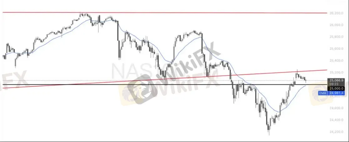 纳指反弹受阻收敛三角 —— 25000成关键防线