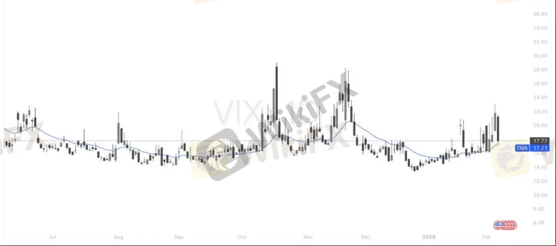 VIX近期回落至17一线,但整体仍运行在20日均线之上,显示波动率虽短线回调,但风险溢价并未明显消退。当前结构更偏向高位震荡而非趋势转弱。若后续重新走高并扩大至更高区间,需警惕市场波动加剧;若跌破20日均线,则情绪可能重新趋稳。