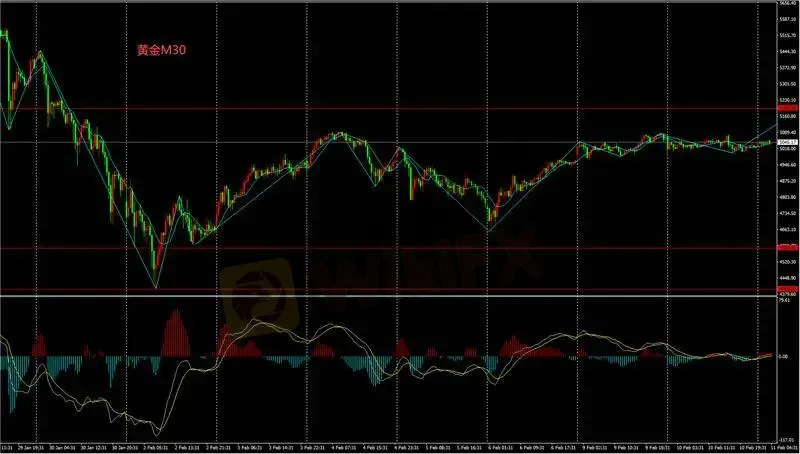 M30图表金价呈现震荡多头态势,日内逢低买入操作,目标5100。