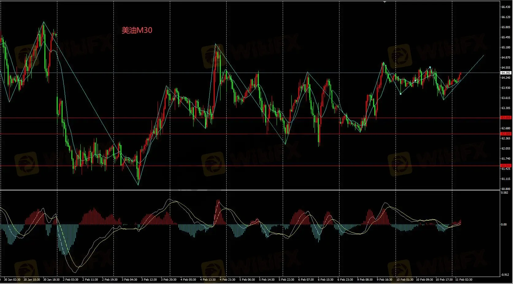 美油M30若日内价格失守63持续下挫,则短期看空。