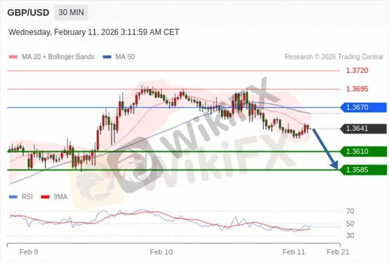 交易策略: 在 1.3670 之下,看跌,目标价位为 1.3610 ,然后为 1.3585。