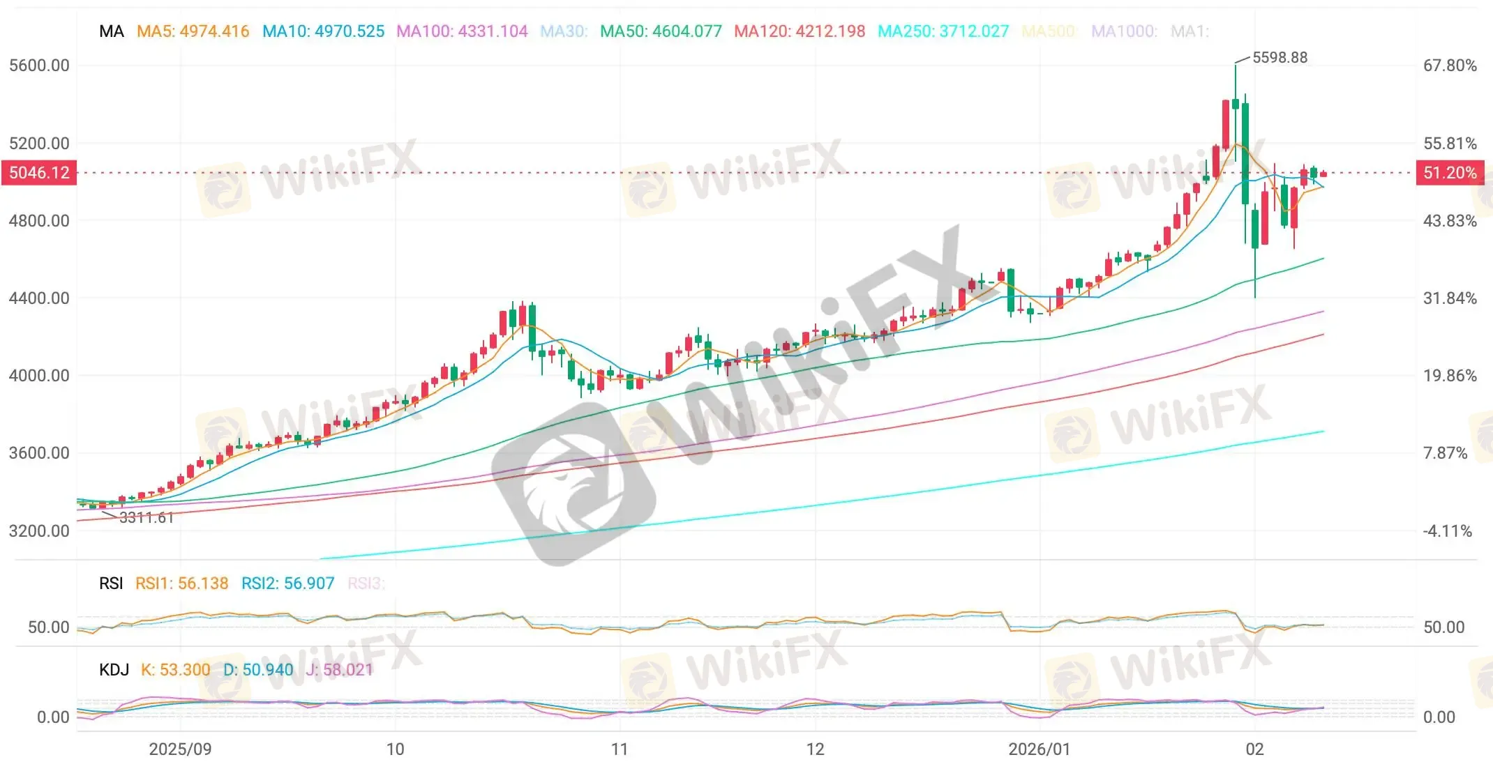 从结构上看,现货黄金仍处于阶段性上行通道内,4650 一线为中期重要支撑区域。只要价格稳守 4650 之上,整体偏多结构未被破坏,上方仍有望向 5400 及 5600 区域延伸。若跌破 4650,则需警惕回调空间扩大,下方关注 4400 与 4270 一带的承接表现。