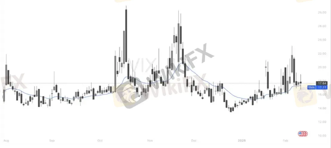 从技术结构看,价格在14附近形成阶段性底部后持续抬高低点,并成功收复均线,短线多头占优。若VIX继续站稳 17.3上方(EMA支撑),波动率有望进一步向上扩展,通常对应风险资产进入震荡或回撤阶段。相反,若重新跌回均线下方,则说明风险溢价回落,市场可能重回风险偏好环境。