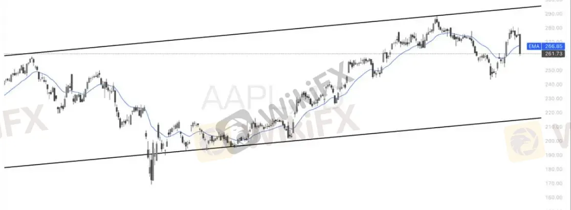 从图表结构来看,苹果价格已明确跌破20日均线,短线趋势由均线支撑转为均线压制,市场节奏出现降档信号。此前多次回踩均线均获得支撑并延续上行,而本次失守后反弹未能有效收复,表明多头动能减弱,短线进入震荡偏弱阶段。下方关注260一线支撑,一旦跌破,价格可能进一步回测240附近结构需求区。