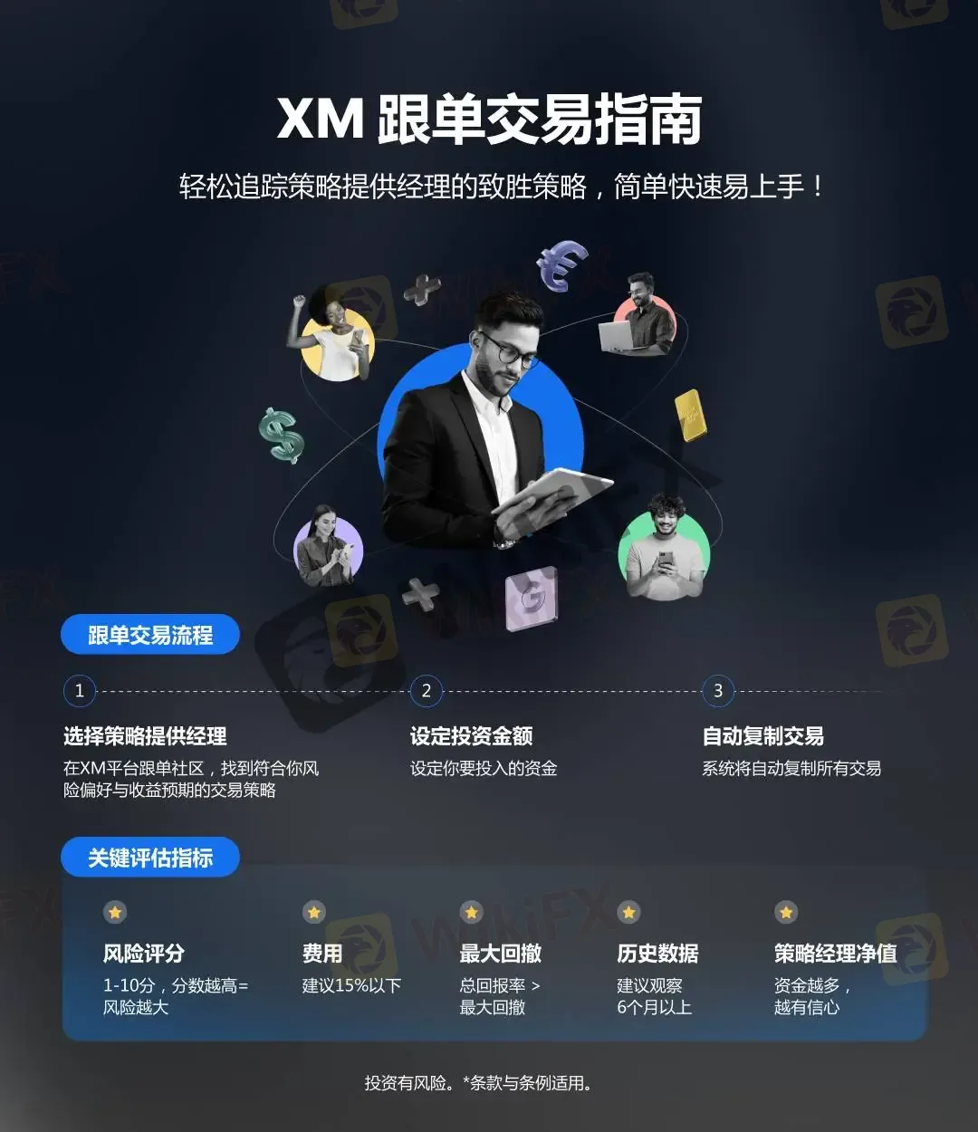 在XM跟单社区(Copy Trading),你可以根据自身风险偏好和交易风格,选择合适的交易策略,系统会自动操作,让你轻松跟单,无需盯盘,即可把握市场节奏!