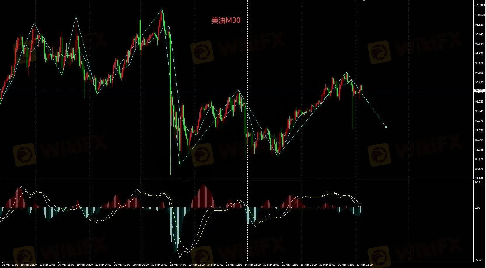 美油M30图表多头宜等待震荡下跌结束后,逢低买入操作;但需知该品种波动较大,当前市场神经敏感。