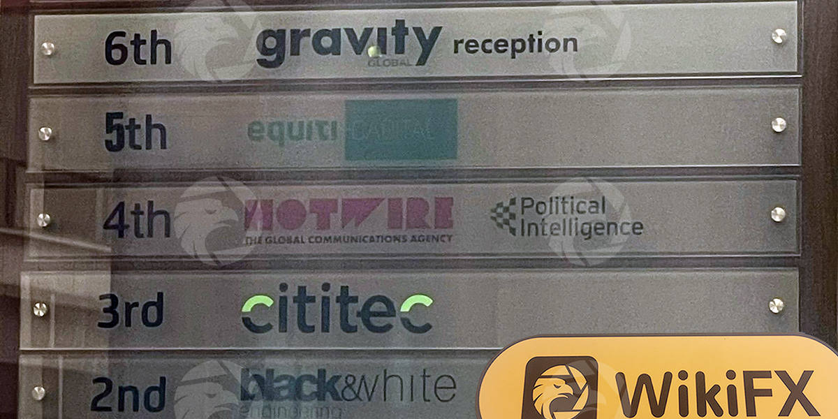 该办公楼大堂设有水牌,内有保安人员,,访客需预约及登记才可进入,水牌上显示Equiti Capital地址为该大厦5楼,由于需预约才能进入该楼层,经大堂reception查证,确定此公司存在及正常营运中。因此证实Equiti Capital与表列地址一致。